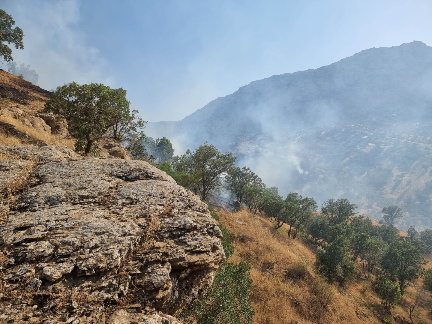 وقالت المديرية في بيان اليوم، أنه وعلى الفور توجهت مفارز قسم شرطة الغابات في قرداغ مركز (سيوسينان) إلى مكان الحادث، وفي البداية تم التمكن من السيطرة على الحريق في أقل من ثلاث ساعات بالتعاون مع مديرية الدفاع المدني في القضاء المذكور، وفريق الطيران المدني في محافظة السليمانية، ومواطني المنطقة، ولكن بسبب وعورة المكان استعرت النيران مرة أُخرى.