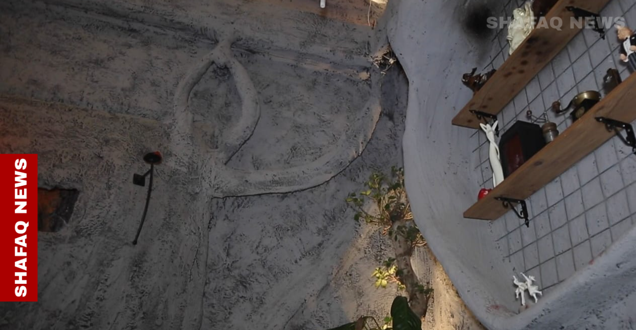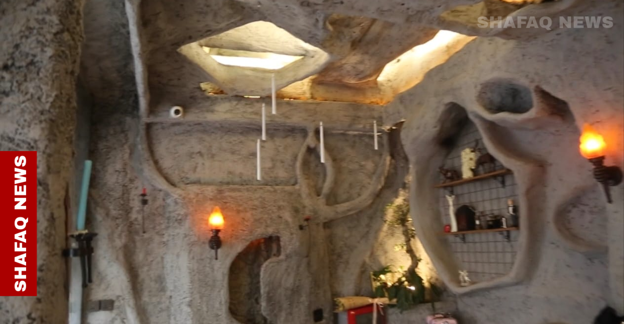 دلشاد إلى أن المكان صُمم ليشبه الكهف فعلاً، فجدرانه الداخلية مكسوّة بأحجار