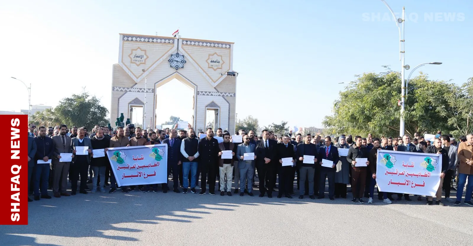 وفي الأنبار، نظّمت نقابة الأكاديميين ومنتسبو جامعة الأنبار، اليوم أيضاً، وقفة احتجاجية داخل الحرم الجامعي، رفعوا خلالها شعارات رافضة لقرار إلغاء المخصصات الجامعية، مؤكدين أن حقوقهم مكفولة بالقانون ولا يمكن المساس بها.
