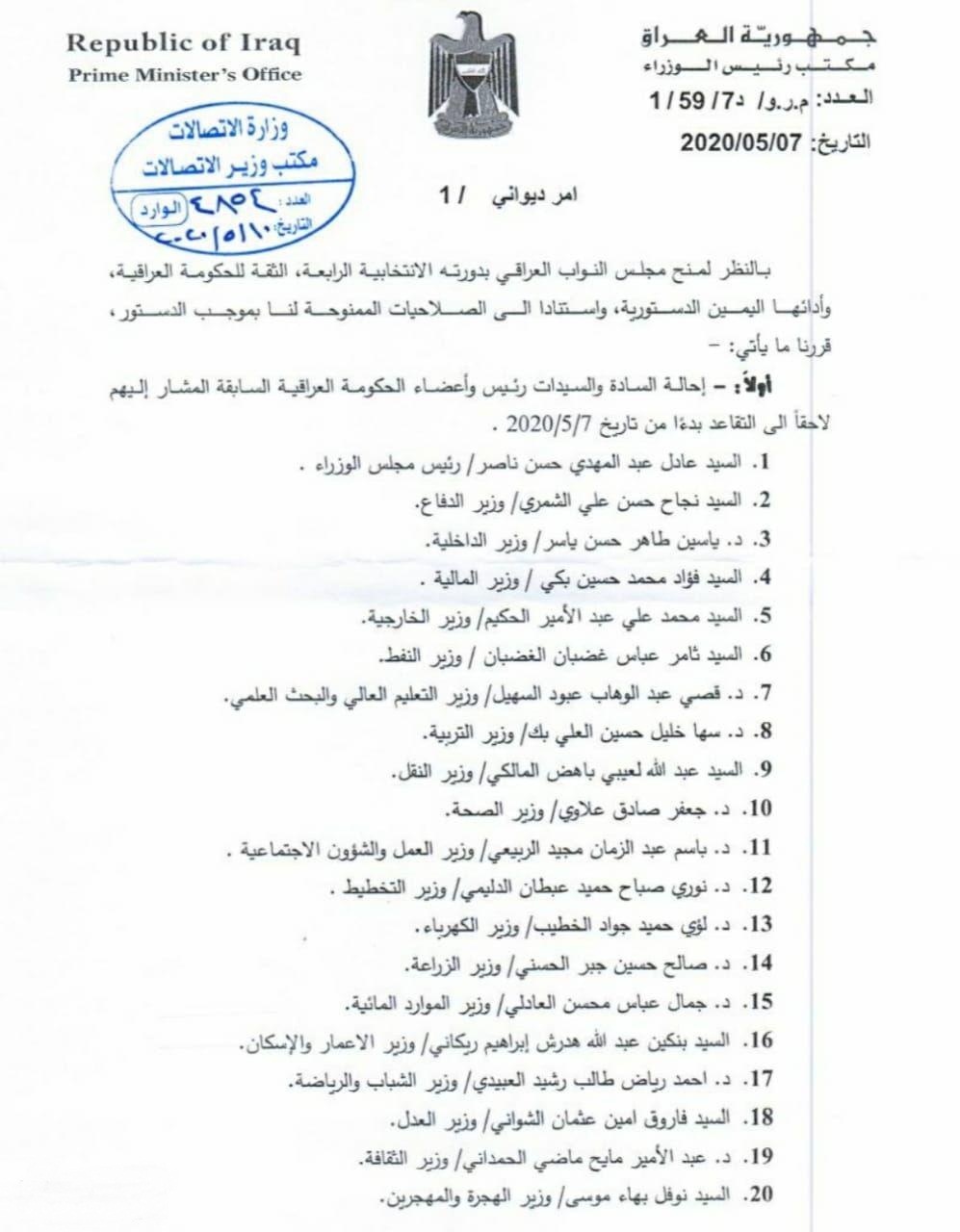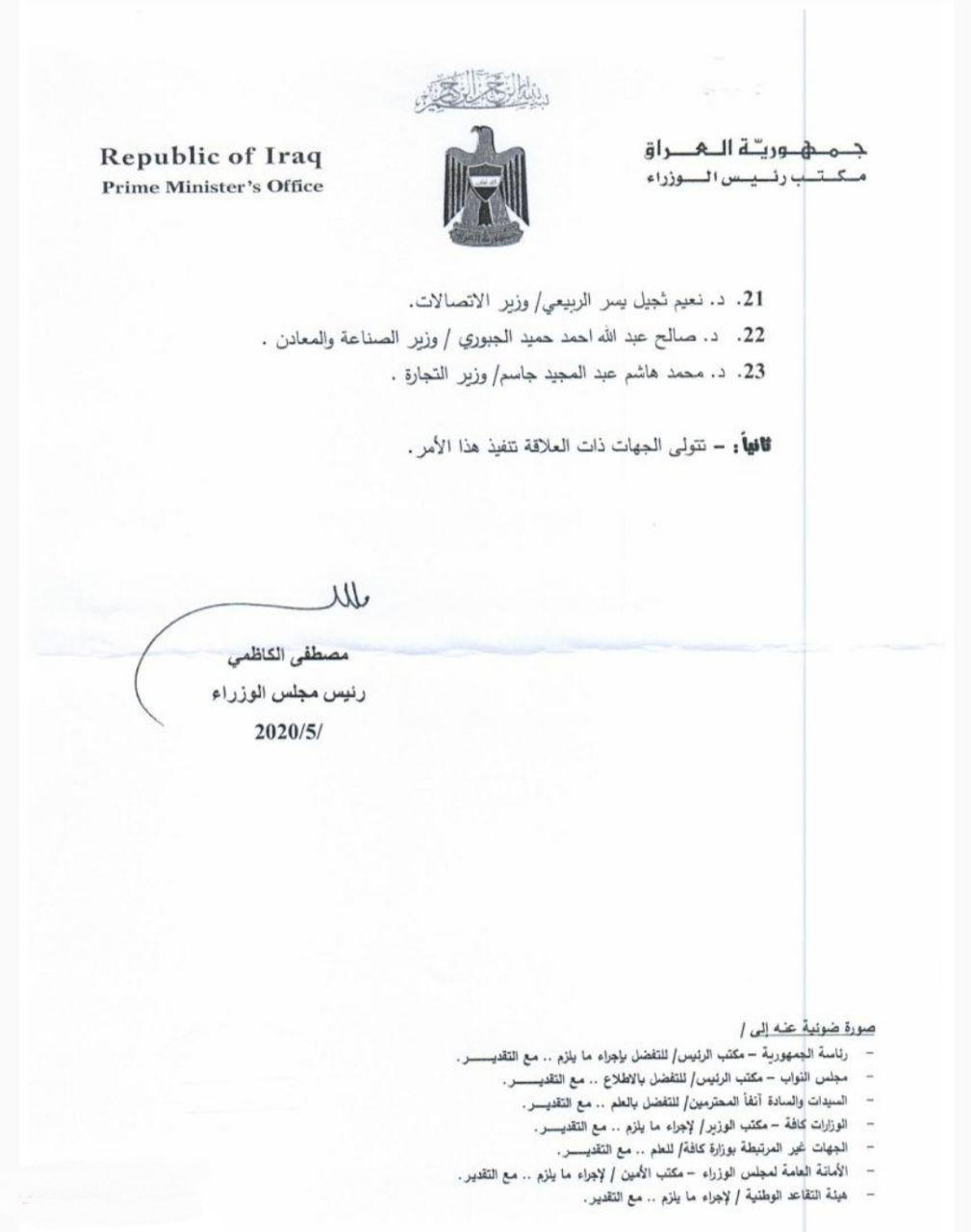 Shafaq News / Prime Minister Mustafa Al-Kahdimi has referred his predecessor, Adel Abdul-Mahdi and his government to retirement.