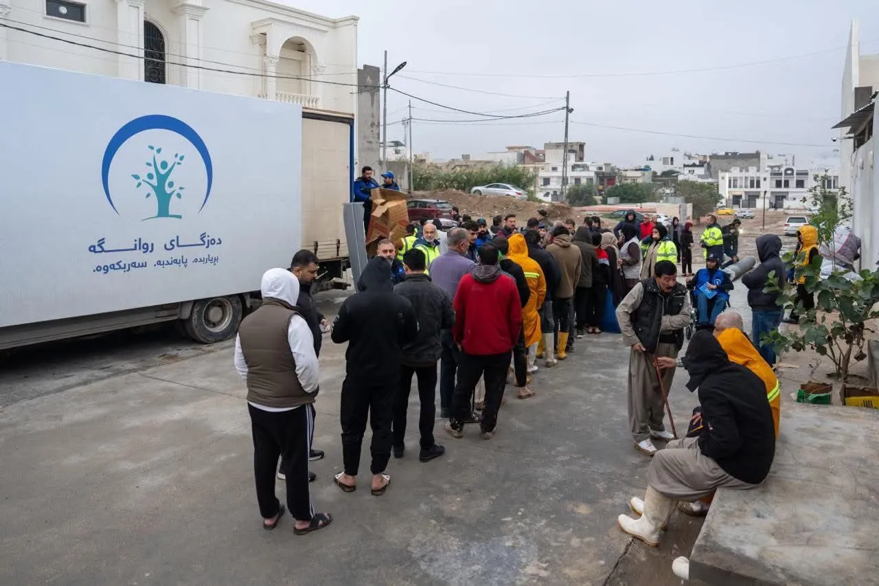 In a statement, the foundation said its teams launched aid operations in Shoraw, one of the hardest-hit neighborhoods in the provincial capital. The distribution was carried out by Rwanga’s field teams in coordination with the Directorate of Migration and Displacement under the Kurdish Ministry of Interior, ensuring support reached families directly impacted by the floods.